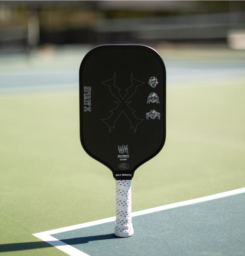 Spirit X is the ultimate combination of Wild Monkeys paddle features. The 8.3 oz midweight build starts with an elongated, rounded rectangle face made from T700 carbon fiber and foam edging around our signature 15 mm core, balancing potential for control and power. Spirit X is then thermoformed into a single edgeless piece of premium carbon fiber. The 5.5 in. EVA foam handle is handwrapped with a PROLITE No Sweat Diamond Grip, a premium grip with best-in-class durability, comfort and moisture control. A neoprene paddle cover with zipper featuring the highly requested "No Evil Monkeys" pickleball design is included with purchase.